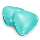 De tablet van Super Kamagra heeft een turquoise kleur en een driehoekige vorm.
